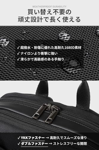 - そして、スタイリッシュな外観と実用性を両立し、通勤や出張など多様なシーンで活躍できるバッグです。